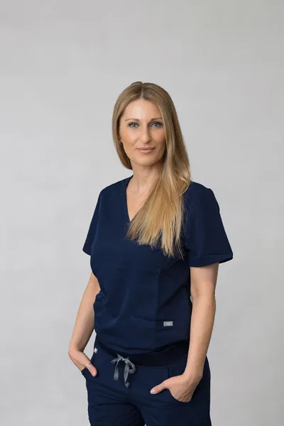 Absolwentka Uniwersytetu Medycznego w Lublinie na kierunku lekarsko-dentystycznym. Posiada tytuł Specjalisty Stomatologii Dziecięcej. Praktykę stomatologiczną opiera na holistycznym podejściu, które obejmuje opiekę nad pacjentami trudnymi, dziećmi i osobami niepełnosprawnymi. Wykorzystuje różne formy sedacji, aby swoim pacjentom zapewnić maksymalny komfort i relaks podczas zabiegów. Regularnie uczestniczy w kursach i sympozjach, aby być na bieżąco z najnowszymi technikami i technologiami w dziedzinie stomatologii. Dzięki temu może zapewnić najwyższy standard opieki stomatologicznej. Karierę rozpoczęła w Szpitalu Wojskowym w Krakowie, gdzie zdobywała pierwsze doświadczenie w dziedzinie stomatologii, pracując pod nadzorem doświadczonych specjalistów. Czas wolny poświęca na wędrówki górskie, które uznaje za swój sposób na relaks.